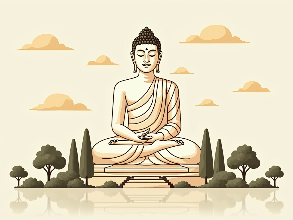- Facial Features: Serene expression with eyes lowered, embodying peace and compassion